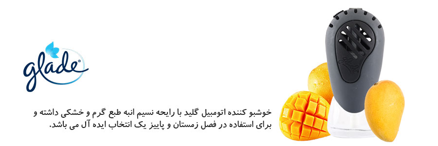 خوشبو کننده اتومبیل گلید با رایحه انبه حجم ۷ میل بوی گرم و مطبوعی را به محیط خودرو شما خواهد بخشید. این محصول دارای ماندگاری بسیار بالا (۷۵ روز) است.