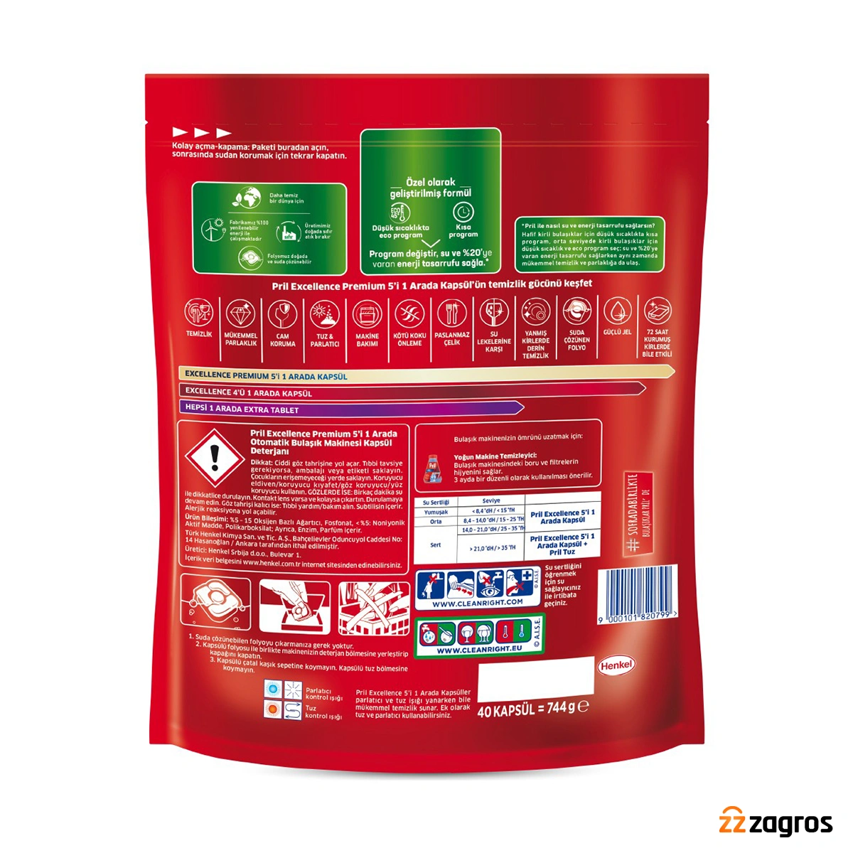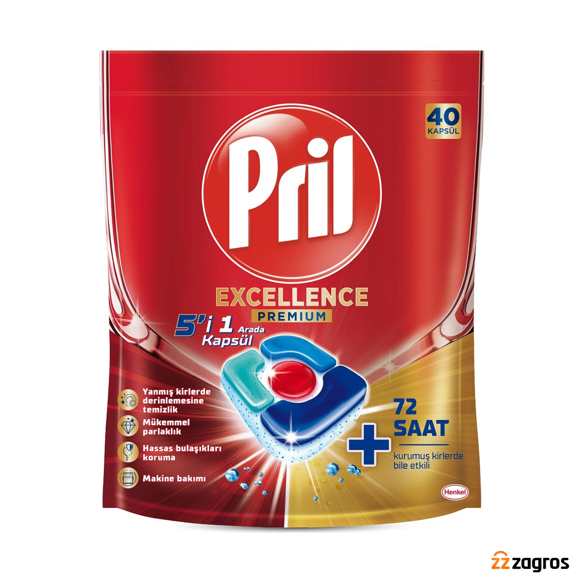 قرص ماشین ظرفشویی ۵ در ۱ پریل مدل Excellence بسته ۴۰ عددی