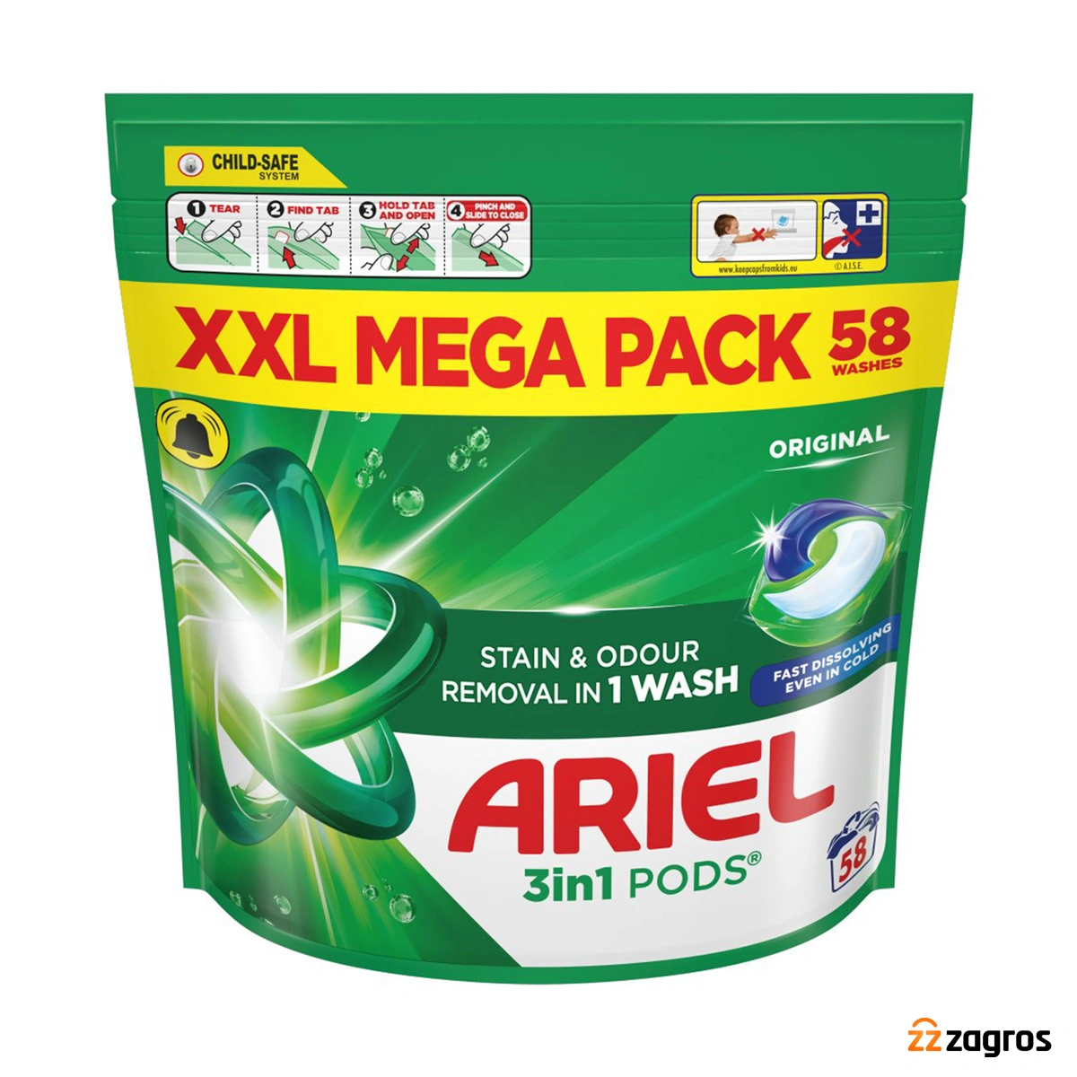 نرمی و لطافت خارق العاده ای برای لباس های شما به ارمغان خواهد آورد و همچون شوینده های پودری در ماشین لباسشویی و لباس های شما رسوب نخواهد گذاشت. از شاخص ترین ویژگی های Ariel All in 1 Pods تمیز کنندگی عمیق، حفاظت از بافت پارچه و لکه بری آن است. محصول دارای ۵ ویژگی شاخص تمیز کنندگی عمیق، لکه بری، تازه کنندگی، حفاظت از بافت پارچه و موثر در دمای ۲۰ درجه است.